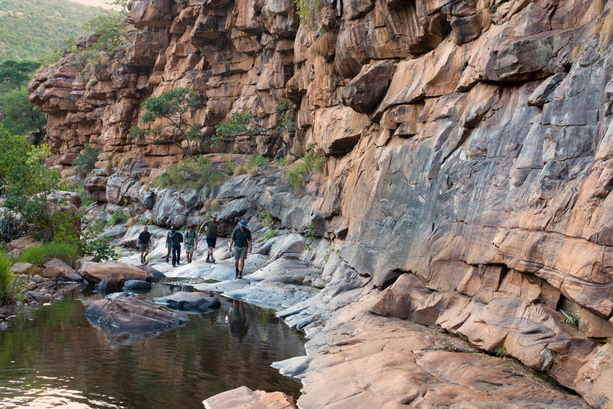 The Bushman’s Gorge walk is a favorite among Marataba’s Field Guides, offering a captivating blend of natural beauty and historical intrigue. As you enter the gorge, you’ll encounter shallow caves bearing evidence of millennia of human habitation, including San Rock Art paintings from the Late Stone Age and Iron Age tools used by Bantu-speaking tribes. The gorge’s entrance is lined with Sandpaper Raisin trees, Sicklebush, and Blackjack, leading to a path that opens up to reveal stunning rock pools and towering gorge walls.