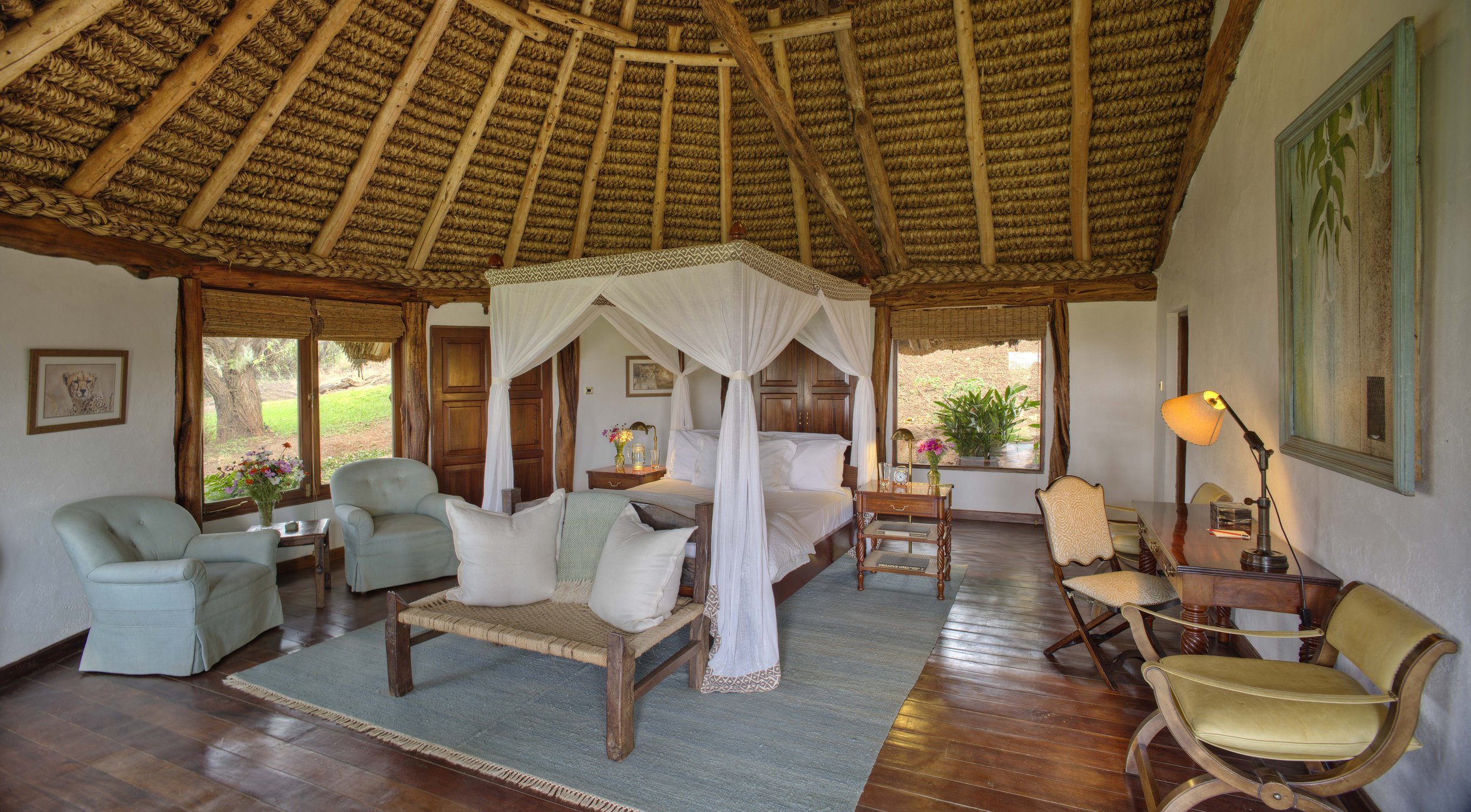 Lewa House is a striking thatched main house that serves as the central gathering area, while the accommodations are individual cottages spread across the grounds, each offering distinct views of Kenya’s Northern Frontier.